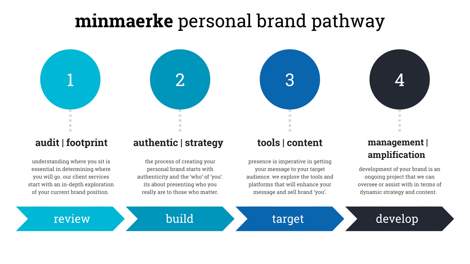 stage two: we establish your authentic brand position and deliver a strategic approach for implementation designed to maximise your brand story and footprint into the future. each strategy is unique to each client and designed to drive your individual goals for personal brand growth.